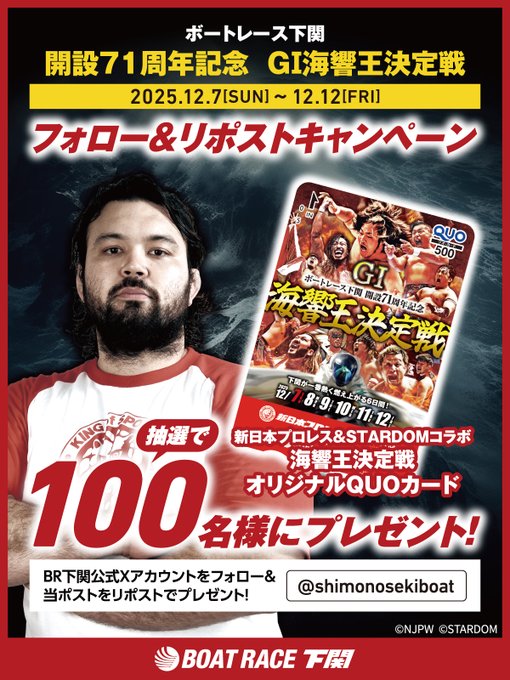 ボートレース下関「開設71周年記念 GⅠ海響王決定戦」 フォロー&リポストキャンペーン