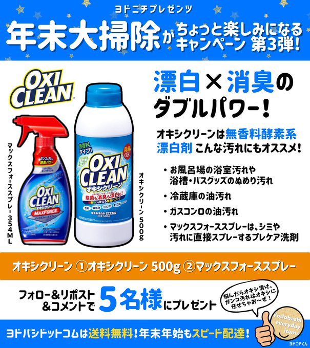 賞品:オキシクリーン 500g&マックスフォーススプレー 354mL(5名様)