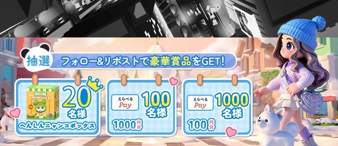 賞品:えらべるPay最大1,000円分、公式グッズ(1,120名様)