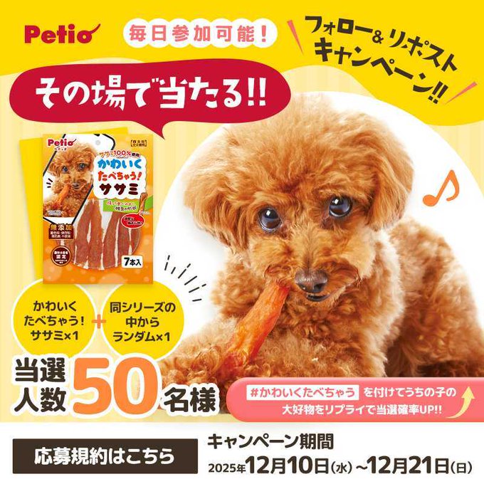 Petio公式X(Twitter)アカウントをフォロー&キャンペーン対象ポストをリポストしてご応募ください。