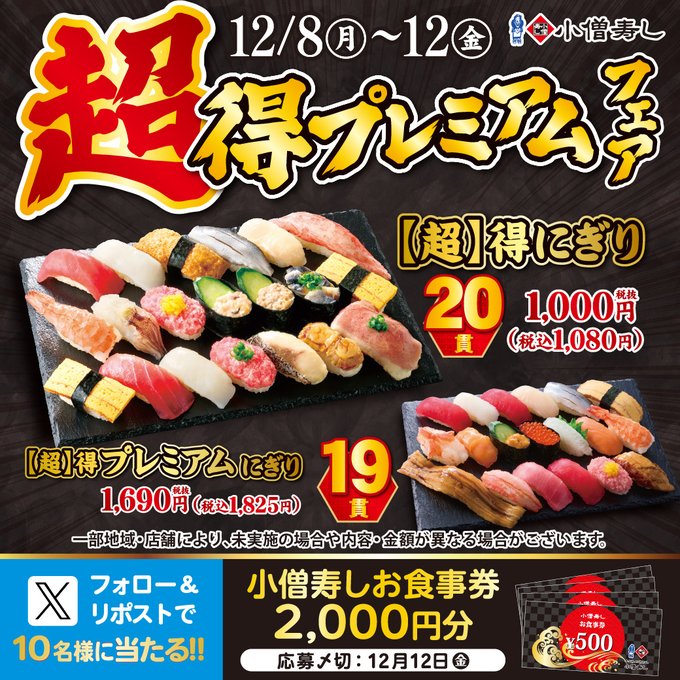 賞品:小僧寿しお食事券2,000円分(10名様)