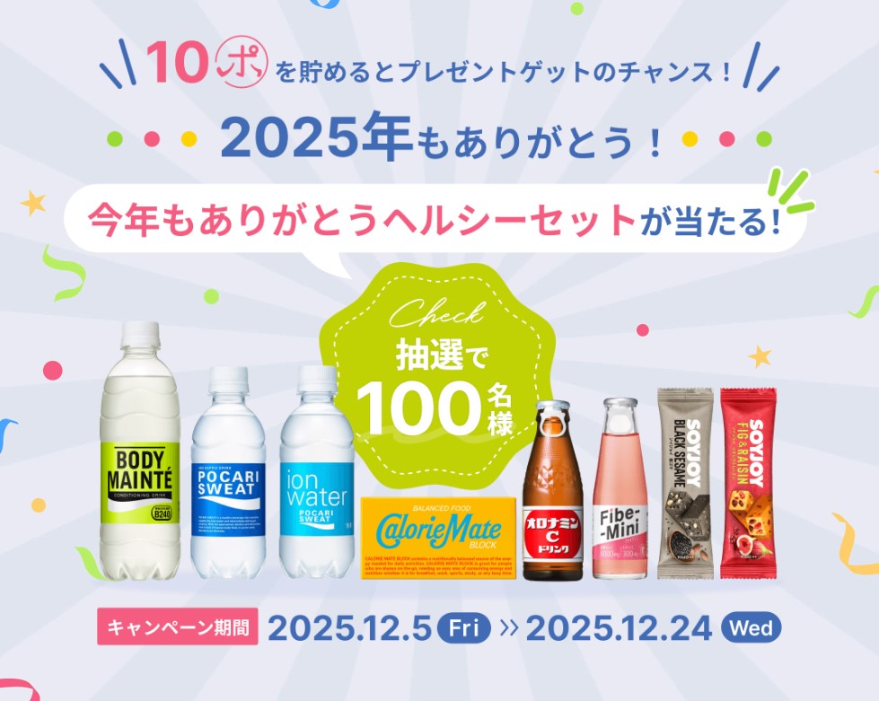賞品:大塚製薬の製品詰め合わせ「今年もありがとうヘルシーセット」(100名様)