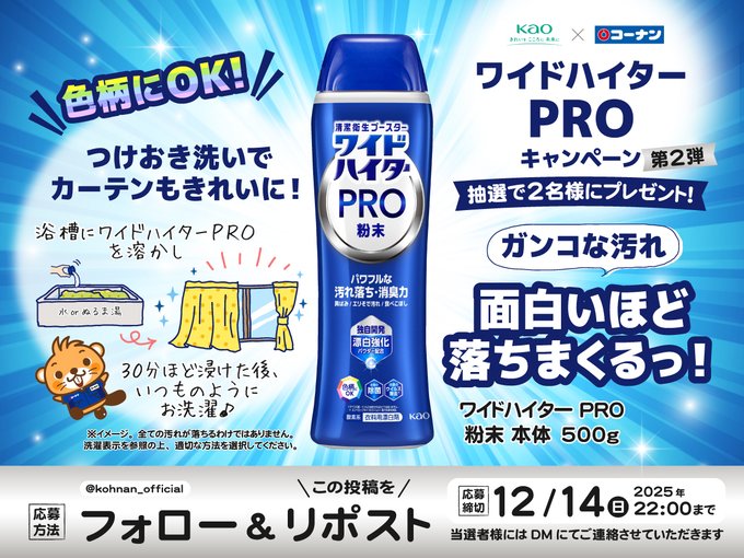 賞品:花王ワイドハイターPRO 粉末 500g(2名様)
