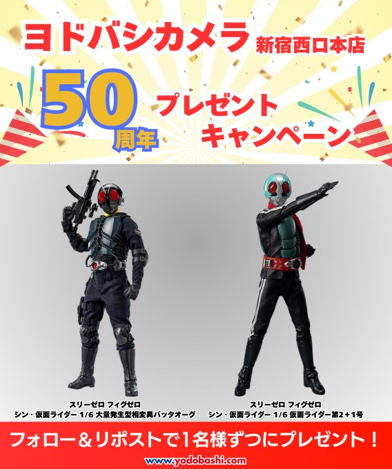 賞品:スリーゼロ フィグゼロ シン・仮面ライダー 大量発生型相変異バッタオーグ、仮面ライダー第2+1号(2名様)