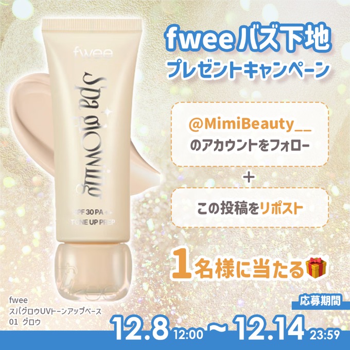 賞品:fweeの”スパグロウ UVトーンアップベース 01 グロウ”(1名様)