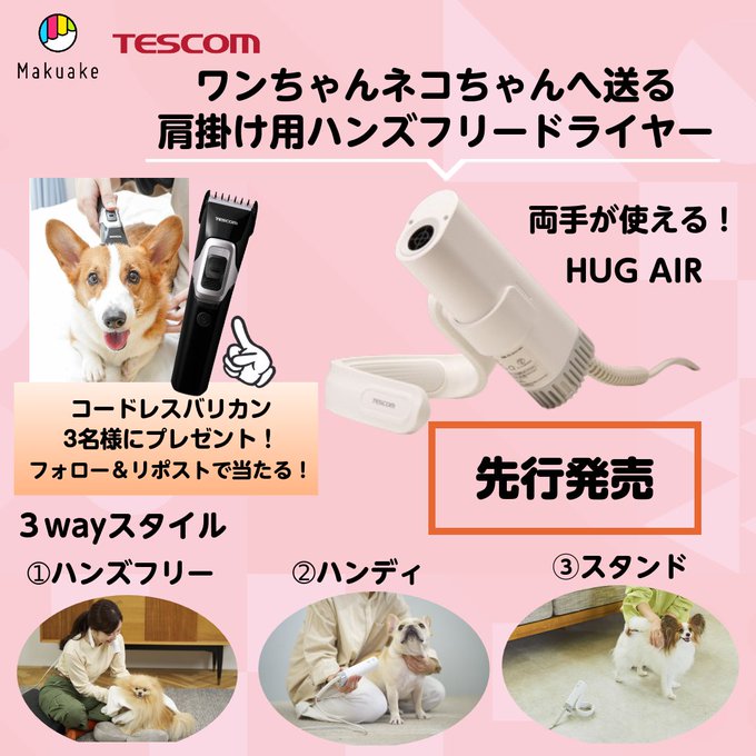 テスコム‐Makuakeペット用ハンズフリードライヤー発売記念キャンペーン