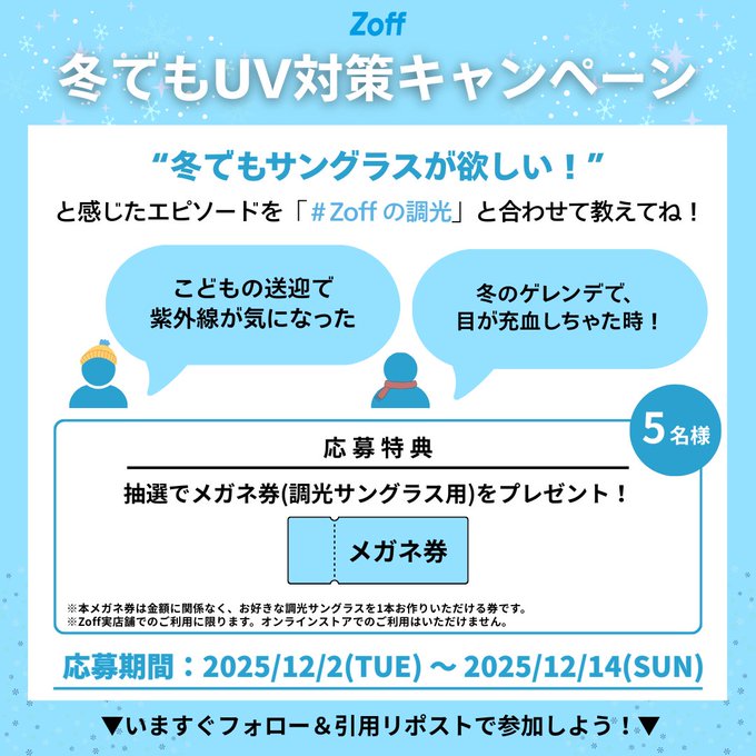 Zoff_INFO‐皆さんの「冬でもサングラスが欲しい!」と感じたエピソードを教えてください!