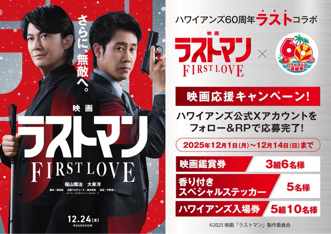 賞品:ムビチケ前売券、スペシャルステッカー、ハワイアンズ入場券(合計13名様)