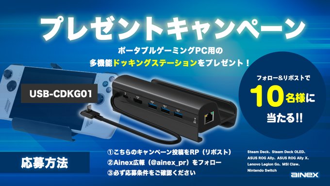 賞品:ポータブルゲーミングPC用の多機能ドッキングステーション(10名様)