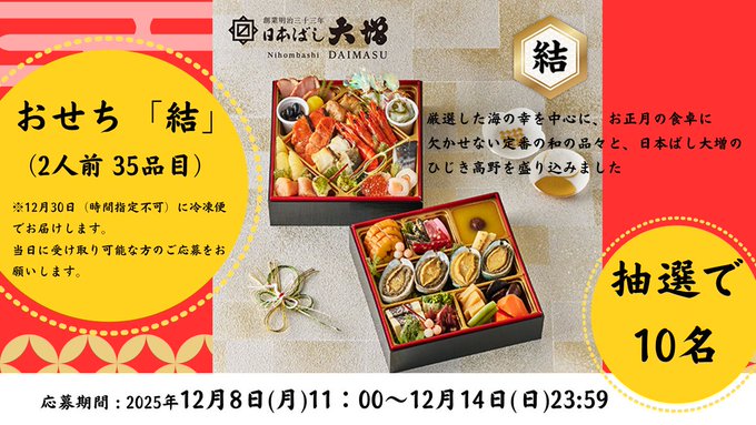 賞品:日本ばし大増おせち料理 「結」(10名様)