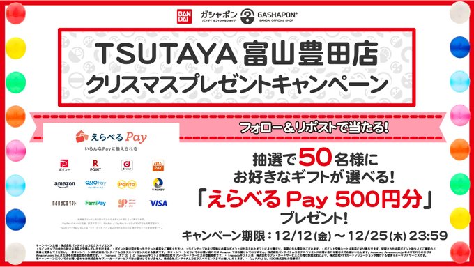 ガシャポンバンダイオフィシャルショップTSUTAYA富山豊田店‐TSUTAYA富山豊田店 クリスマスプレゼントキャンペーン