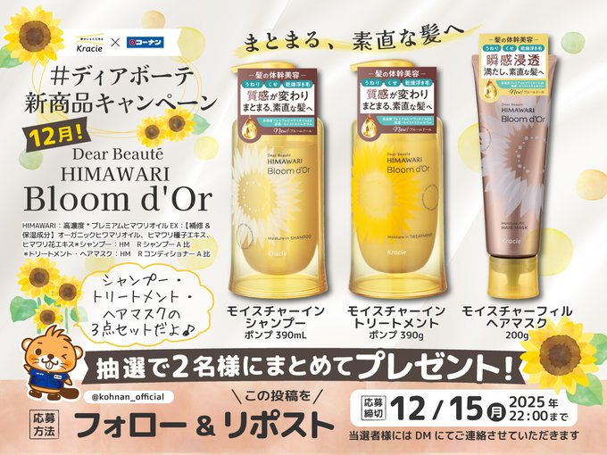 賞品:ディアボーテ HIMAWARI Bloom d’Or 3点セット(2名様)