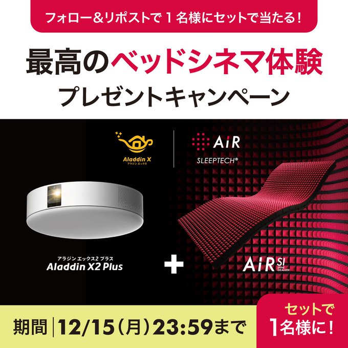 @aladdinx_jpと@nishikawa_sleepをフォロー&キャンペーン対象ポストをリポストしてご応募ください。