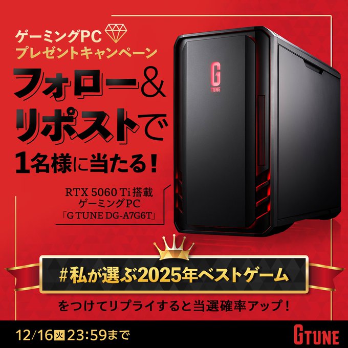 賞品:RTX 5060 Ti搭載の G TUNE(1名様)
