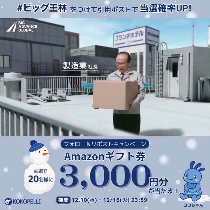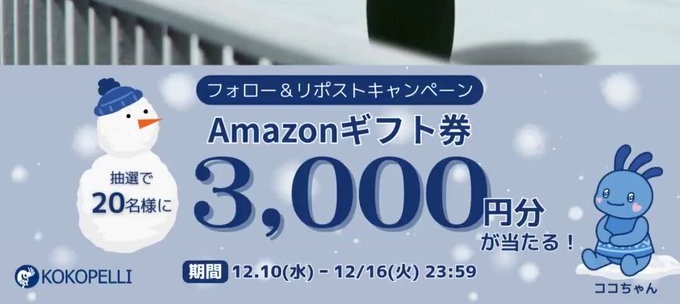 賞品:Amazonギフト券3,000円分(20名様)