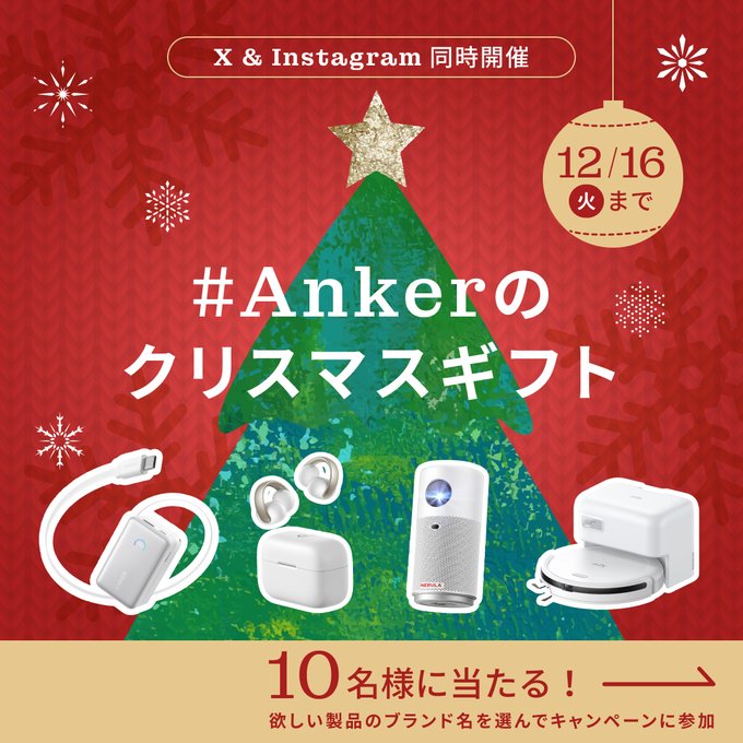 賞品:モバイルバッテリー、イヤホン、ロボット掃除機、プロジェクター(合計10名様)