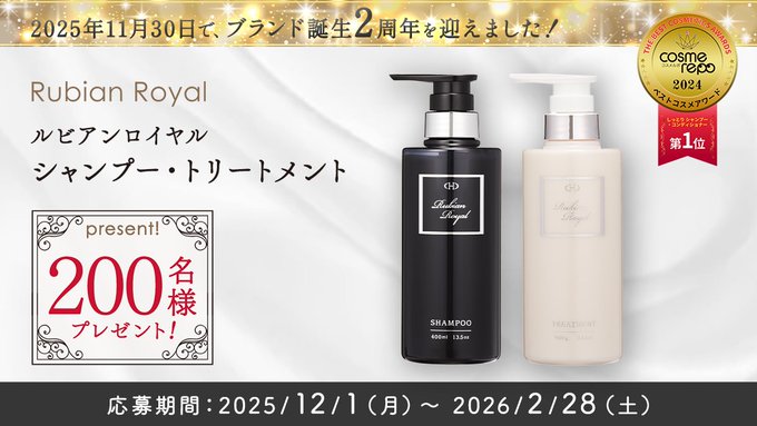 賞品:ルビアンロイヤル シャンプー・トリートメント(200名様)