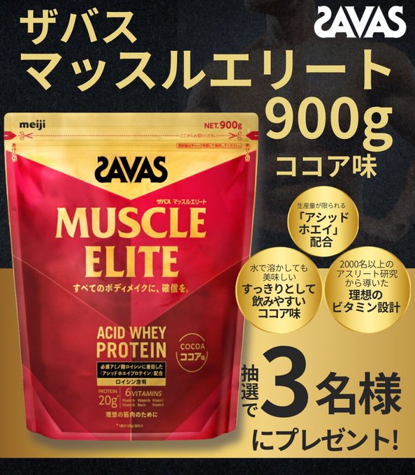 賞品:ザバスマッスルエリート900gココア味(3名様)