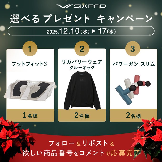 賞品:フットフィット3、リカバリーウェア、パワーガン スリム(合計5名様)