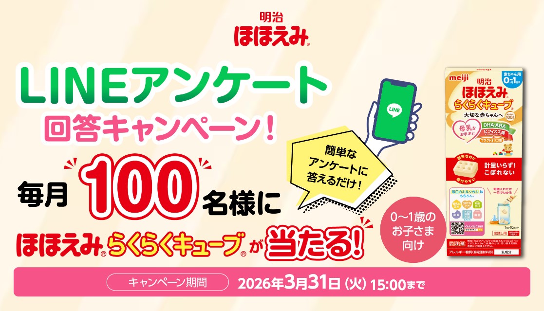 明治ほほえみ らくらくキューブ LINEアンケート回答キャンペーン