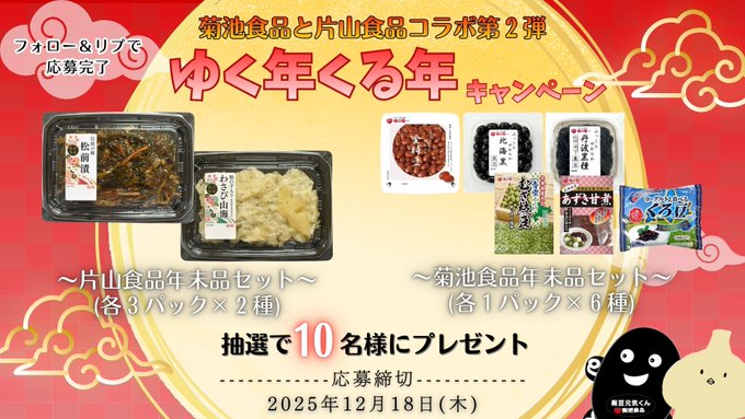 賞品:菊池食品 賞品、片山食品 賞品(10名様)