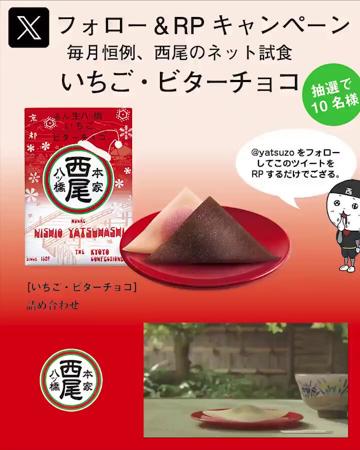賞品:クリスマス限定あん生八ッ橋 いちご・ビターチョコ(10名様)