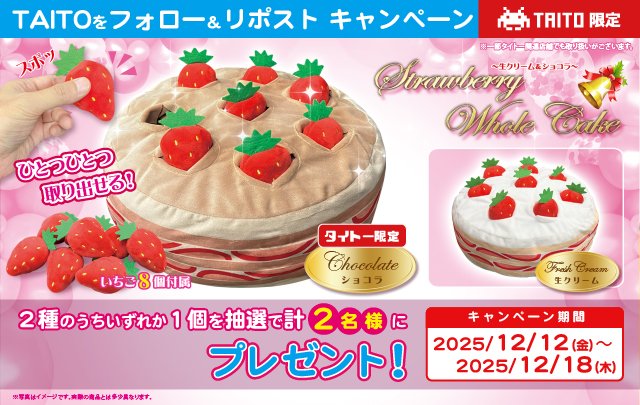 賞品:苺ホールケーキぬいぐるみ~生クリーム&ショコラ~(2名様)