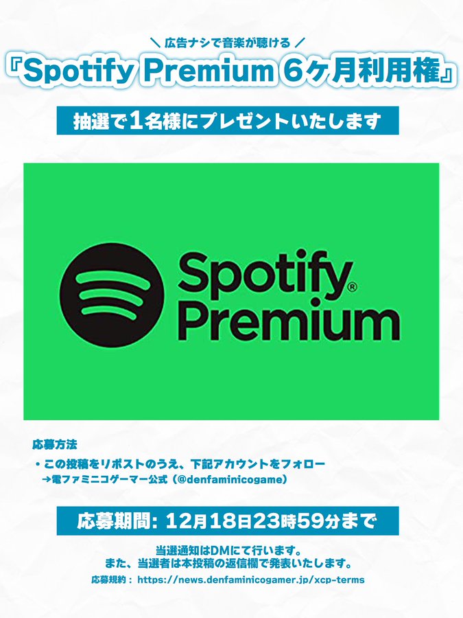 賞品:Spotify Premium 6ヶ月利用権(1名様)
