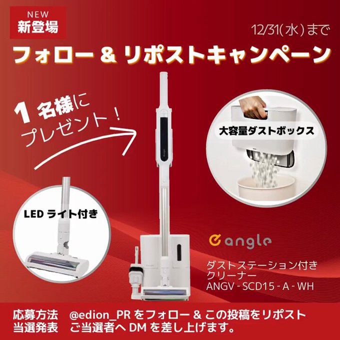 賞品:新発売 e angle ダストステーション付きクリーナー(1名様)