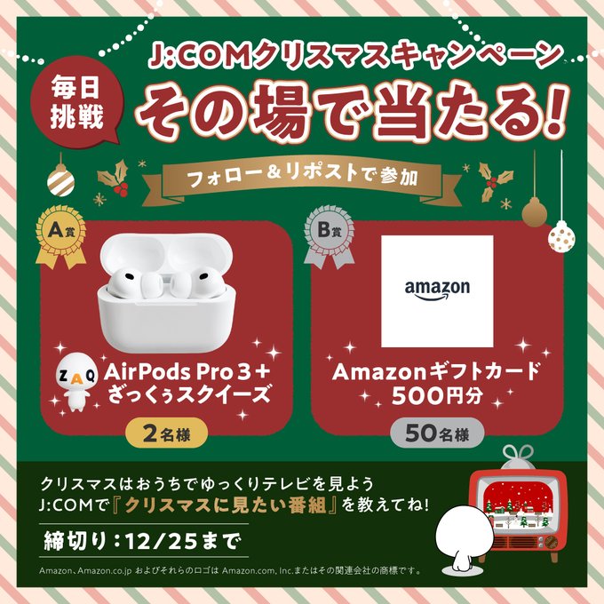 J:COM公式X(Twitter)アカウントをフォロー&キャンペーン対象ポストをリポストして、記載されているURLからご応募ください。