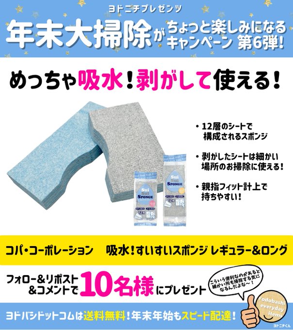 賞品:コパ・コーポレーション「吸水!すいすいスポンジ」(10名様)