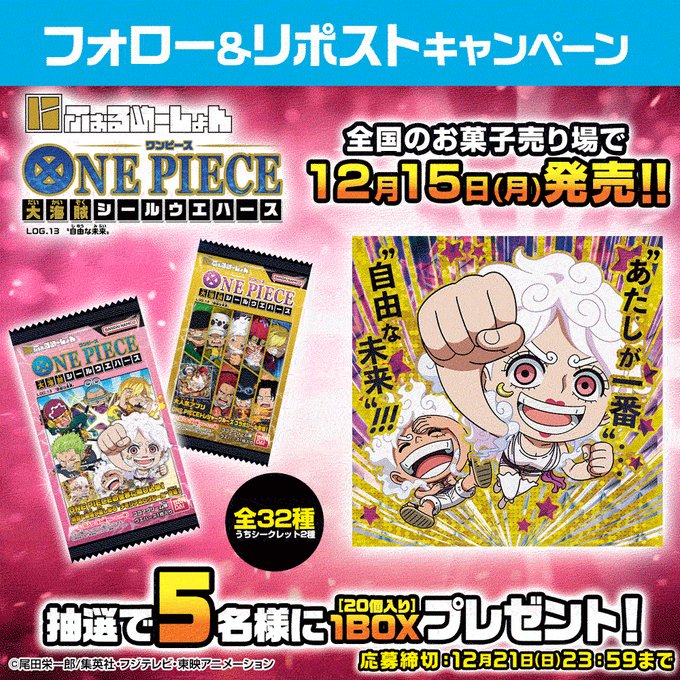 賞品:にふぉるめーしょん ワンピース大海賊シールウエハース LOG.13(5名様)