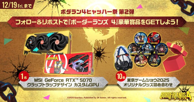 【X懸賞】MSI GeForce RTX™ 5070 クラップトラップデザイン カスタムGPU、東京ゲームショウ2025 オリジナルグッズを合計11名様にプレゼント