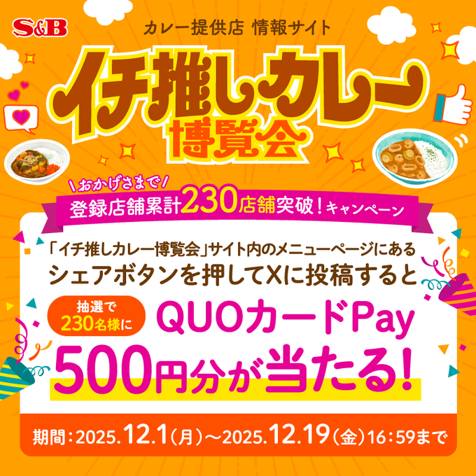 エスビー食品株式会社‐おかげさまで登録店舗230店舗突破!キャンペーン
