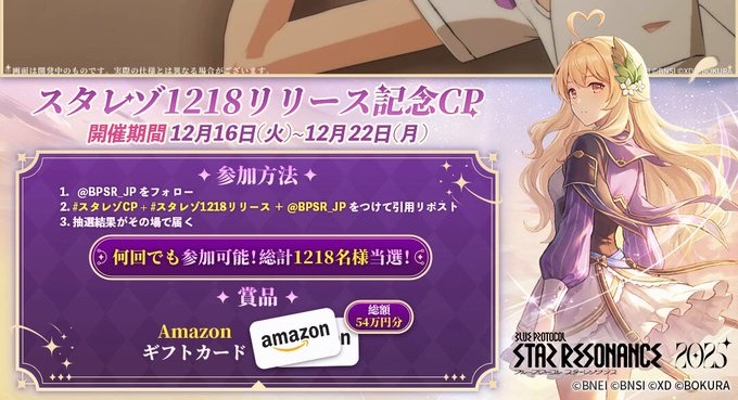 ②ハッシュタグ「スタレゾCP」+ ハッシュタグ「スタレゾ1218リリース」+ @BPSR_JP をつけて引用リポスト
