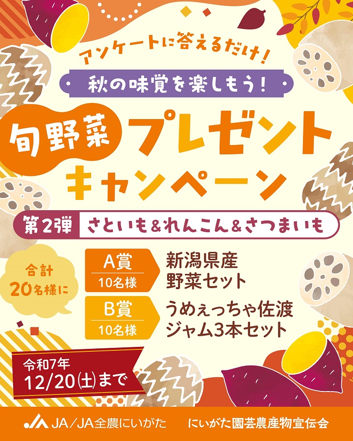にいがた園芸農産物宣伝会 秋の味覚を楽しもう!旬野菜プレゼントキャンペーン 第2弾