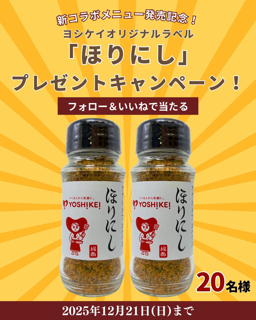 賞品:ヨシケイオリジナルラベル「ほりにし」2本セット(20名様)