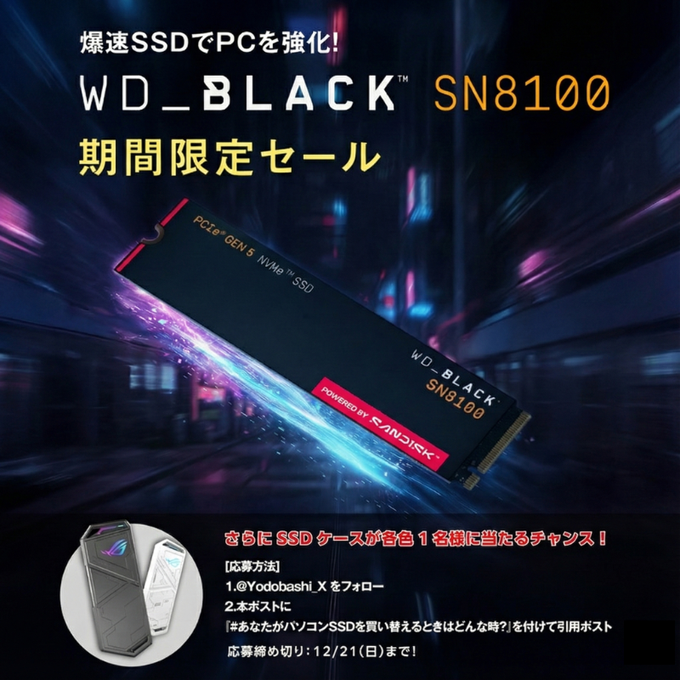 【X懸賞】内蔵SSDを外付けSSD化できるケースを2名様にプレゼント