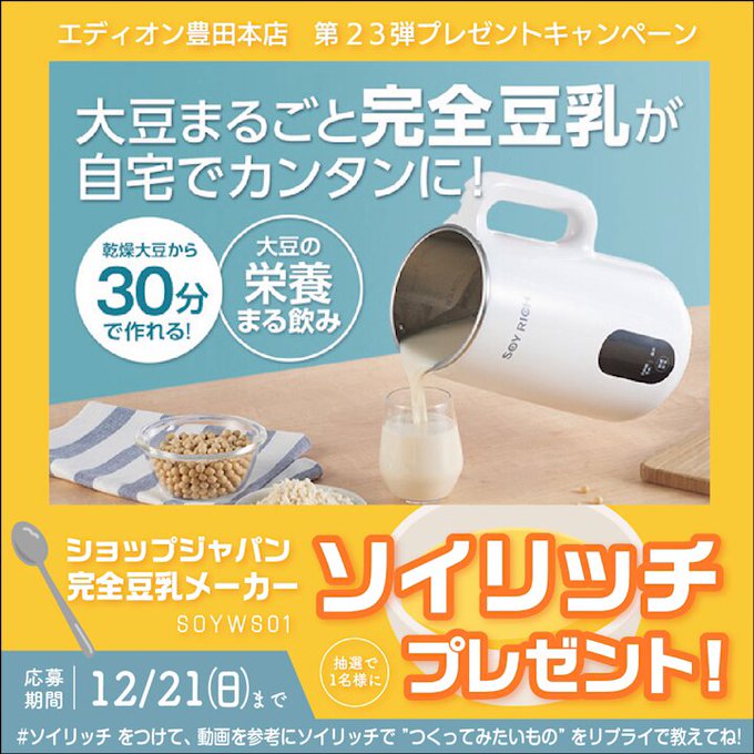賞品:完全豆乳メーカーソイリッチ(1名様)