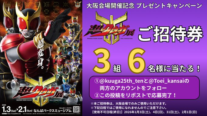 @kuuga25th_tenと@Toei_kansaiをフォロー&キャンペーン対象ポストをリポストしてご応募ください。