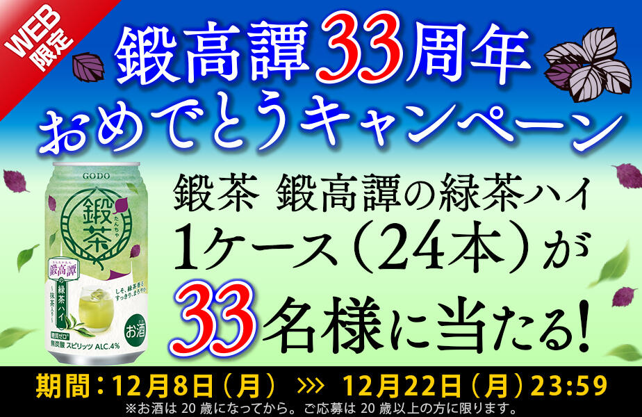 鍛茶 鍛高譚の緑茶ハイ 1ケースを33名様にプレゼント
