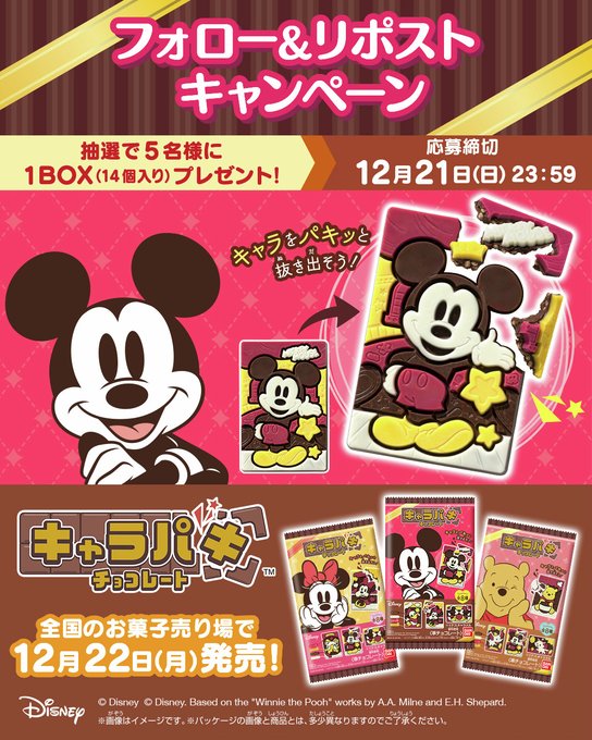 賞品:Disney Characters キャラパキ チョコレート 1BOX(5名様)