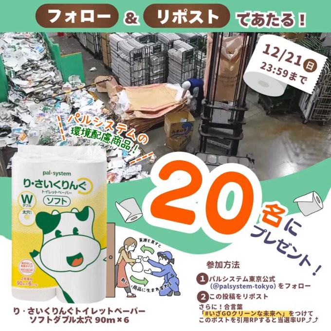 賞品:り・さいくりんぐトイレットペーパーソフトダブル太穴 90m×6(20名様)
