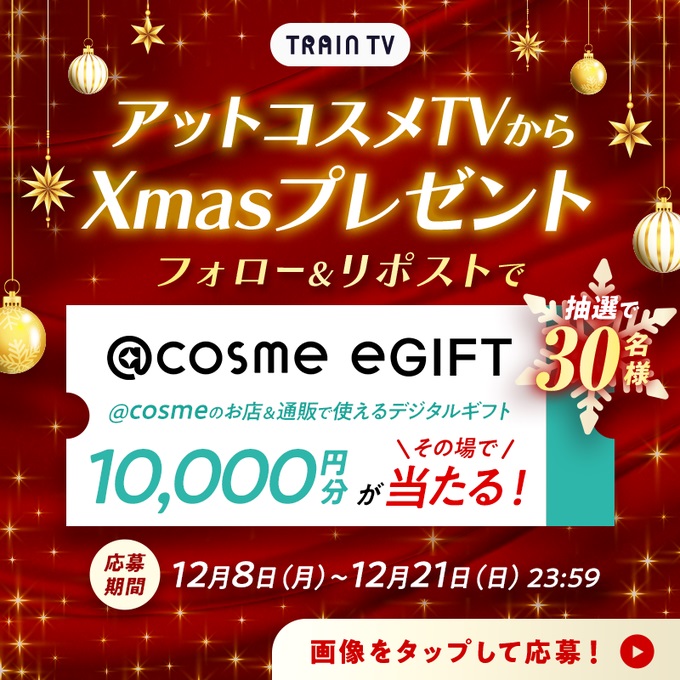 賞品:アットコスメeGIFT10,000円分(30名様)