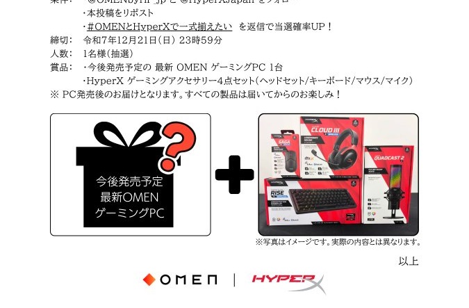 @OMENbyHP_jpと@HyperXJapanをフォロー&キャンペーン対象ポストをリポストしてご応募ください。