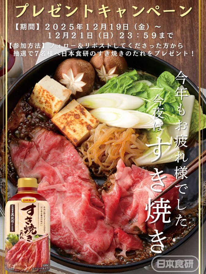 賞品:日本食研すき焼きのたれ10本セット(7名様)