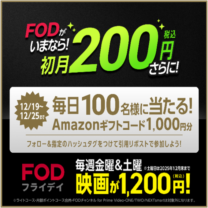 ②「FODなら初月200円でドラマ見放題」のハッシュタグをつけて「冬に見たいドラマ」を引用ポストで投稿