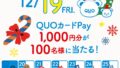 QUOカードPay公式アカウントを友だち追加のうえ、トーク画面内メニューからガラポンゲームに参加すると、毎日300名様にQUOカードPay100円分が当たります。