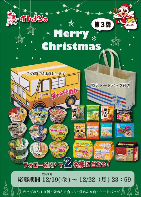 賞品:イトメン即席めん詰合せとグッズ(2名様)