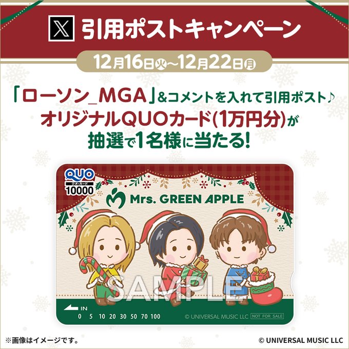 【X懸賞】QUOカード1万円分を1名様にプレゼント 2025.12.20ローソン‐プレゼントキャンペーン 賞品:QUOカード1万円分(1名様) 締切:2025年12月22日(月)@akiko_lawsonをフォローし「ローソン_MGA」とコメントを入れて引用ポスト♪※詳細はキャンペーンページにてご確認ください。応募はこちらから
